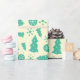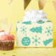 "Cool Holiday Snowflakes Christmas Tree Ornaments Wrapping Paper" combine un mélange amusant d'arbres de Noël turquoise, d'ornements et de flocons de neige, parfait pour envelopper des cadeaux qui se sentent vibrants et amusants.