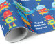 Ce papier d'emballage motif robot cool présente des robots amusants en bleu, vert et rouge avec votre message d'anniversaire personnalisé pour un petit garçon. Joli emballage cadeau pour enfants.