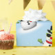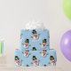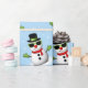 Jolie fête d'anniversaire d'hiver bleu hiver bonhomme de neige papier d'emballage motif pour enfants. Illustration d'un bonhomme de neige cool avec lunettes et gants verts, foulard rouge et chapeau de dessus noir.