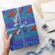 Papier Cadeau Coq et poules arc-en-ciel, bleu électrique