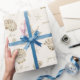 Insufflez votre don avec le charme côtier en utilisant ce papier d'emballage étonnant, avec un motif ludique de coquillages, d'étoiles de mer et de texte amusant inspiré de la plage. Les tons marron doré d'un arrière - plan en grès en option évoquent une atmosphère détendue d'été, maison de plage. Ce design est sûr d'ajouter de la chaleur et du caractère. à tout cadeau. Recherchez ID918 pour voir d'autres options de couleur pour cette conception.
