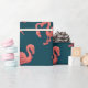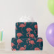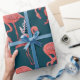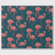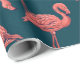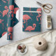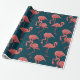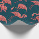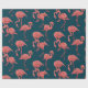 Motif vectoriel avec flamants dessinés à la main en couleur corail vivant sur arrière - plan bleu foncé.