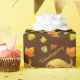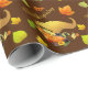 Corne de Thanksgiving en abondance et feuilles d'automne sur papier d'emballage brun foncé.