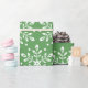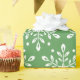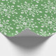 Le papier d'emballage cadeau de Noël comporte des flocons de neige décoratifs blancs feuilles sur arrière - plan vert. Customisez la couleur arrière - plan avec votre choix.