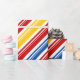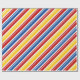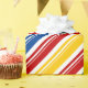 Un papier d'emballage classique à rayures de sucre de canne avec une bande de sucre de canne rouge, bleu, jaune et blanc de couleurs primaires.