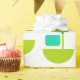 Ce papier d'emballage a un design moderne du milieu du siècle de demi-cercles verts qui ressemblent à des tasses enfilées avec des starbursts et des rectangles turquoise.