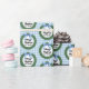 Ce papier d'emballage de Noël classique comporte une couronne d'aquarelle avec arc bleu et dit "Joyeux Noël" et personnalisée avec votre nom de famille.