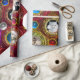PAPIER CADEAU COURONNES DE NOËL FLEURIS ROUGES, CADRE PHOTO AVEC