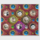 Modèles de photos élégants de la Renaissance florentine, fleurs rouges jaunes brunes vertes avec pierres précieuses bleues en 3D, classiques, art raffiné de la Renaissance, chef-d'œuvre de Bottega della Robbia (Florence - Italie). Design cool facile à personnaliser avec vos photos de famille.