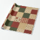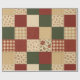 Papier Cadeau Courtepoint Patchwork Rouge Vert Fleurs Campagnard