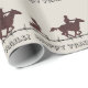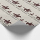 Papier cadeau avec motif rustique de fil de fer barbelé et cowboy à cheval. Vous pouvez ajouter du texte dans le style de police et la couleur de votre choix pour personnaliser ce papier d'emballage western marron.