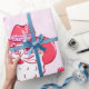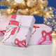 A playful festive artwork featuring cowboy Santa with star shaped glasses, pink disco ornaments tied with bows, cheerful gift boxes, holly sprigs, and a cherry topped holiday cocktail. Set against a soft pink background with scattered snowflakes and dots, the whimsical mix creates a bright, quirky, and joyful seasonal vibe.