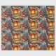 Papier Cadeau Cozy Abyssinian Cat by Fireplace Christmas Lights