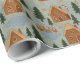 Soft neutral wrapping paper featuring a cozy winter village pattern with small houses, pine trees, and gentle seasonal details.