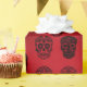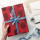 Des crânes de sucre, certains avec des casquettes du Père Noël, sur du papier d'emballage rouge profond. A une vibe de goth. Papier d'emballage unique pour vos cadeaux uniques! De Scarribaby Design.