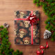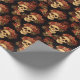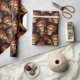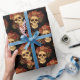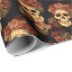 Cette fête d'Halloween ou papier d'emballage mariage gothique présente un motif de crânes déplaisants flottant dans un abîme noir derrière votre texte monogramme. Chaque crâne est orné de roses rouges. Leurs yeux vides d'âme sont fortement contrastés contre la couronne rose goth et les bouquets de fleurs mortes.