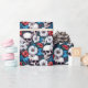 Papier Cadeau Crânes à fleurs rouges et blanches