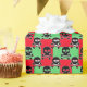 Motif amusant de crânes noirs sur un emballage cadeau rouge et vert. Papier d'emballage unique pour vos cadeaux uniques! De Scarribaby Design.