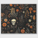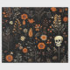 Papier Cadeau Crânes Fleurs et verdure Halloween noir