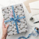 Papier Cadeau Crânes gothiques gris et fleurs Roses