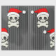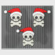 Papier d'emballage mignon, avec l'arrière - plan et le motif noirs et blancs des crânes dans des casquettes rouges de Père Noël.