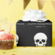 Le crâne blanc est motif sur une couleur arrière - plan noire avec deux zones de texte personnalisables. En haut, on peut lire "Happy Halloween", tandis qu'en haut, on peut ajouter un nom ou un court message. Une façon amusante d'envelopper les cadeaux d'Halloween, les faveurs de fête ou de traiter les sacs avec un style éffrayant simple.