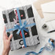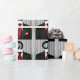 Grands rayures dans des tons variés de gris argenté avec un tuxedo mariage en noir, avec une chemise blanche et cravate rouge profonde avec carré de poche. Parfait pour les cadeaux de marié et les cadeaux pour le futur marié à sa fête de baccalauréat.