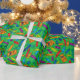 Papier Cadeau Crayon bleu bleu clair sur Motif vert