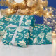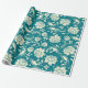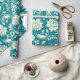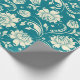 Papier Cadeau Crème claire et Damas florales Turquoises-vertes