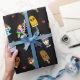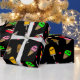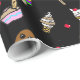 Rouge, noir dessiné à la main whimsical caricature crème glacée, cerises, barres de crème glacée, sundaes crème glacée, banane éclat emballage cadeau d'anniversaire.