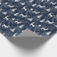 Cette enveloppement fantaisiste présente une scène festive de bois nordique avec cerfs, arbres de Noël et flocons de neige. Avec de minuscules étoiles dorées, il est prêt à ajouter une touche de magie et d'émerveillement à vos célébrations de vacances d'hiver avec vos proches. Arrière - plan bleu nuit, cerfs et arbres blancs, flocons de neige gris-bleu ardoise. Oeuvre originale de Marketa Stengl.