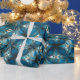 Croix Abstraite en verre de Tige bleu sur un bleu poussiéreux arrière - plan et or accents - parfait pour Noël OU Toutes les occasions emballage cadeau
