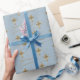 Papier Cadeau Croix d'or bleu Première communion sainte