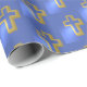 Papier Cadeau Croix d'or chrétienne religieuse Lilac Bleu Pâques