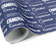 Cool marine nom bleu collage papier d'emballage pour l'anniversaire d'un garçon ou Noël décoré en neuf polices différentes orthographiant votre nom en blanc. Joli emballage cadeau personnalisé pour enfants avec une typographie amusante en blanc.