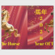 Celebrate the vibrant spirit of the Chinese New Year with this stunning design dedicated to the Year of the Horse. It features a stunning shining golden horse , set against a beautiful red and gold background decorated with Chinese festive features and a bold Chinese caracters for "year of the horse" (馬年) displayed in elegant calligraphy. The entire scene is framed by a dynamic burst of golden confetti and curled strips of gold foil, making it perfect for strong sense of celebration, festivity, and luxury. .