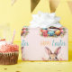 Cute Bunny Colorful Eggs Flowers Happy Easter Wrapping Paper. A pastel-colored Easter greeting card featuring a cute bunny illustration surrounded by decorated eggs and flowers. The bunny has a soft, watercolor style appearance with a friendly, smiling face.