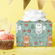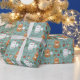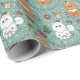 Premium wrapping paper with a whimsical repeating pattern of adorable cats in Santa hats amid gingerbread, trees, ornaments, and snowflakes on a festive teal background—perfect for cat lovers' gifts.