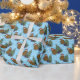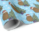 A cute Christmas wrapping paper featuring a cartoon potato in a whimsical Christmas scene. The potato is in front of a Christmas tree that has lights attached and a star on top. Ideal for wrapping your holiday gifts.