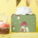 Cette décoration adorable est composée d'une souris blanche et d'un champignon rouge. La souris orne la maison d'un mélange de branches de pin et de tranches d'orange séchées. Les couleurs sont le vert, le rouge et le blanc. L'arrière - plan est vert avec des étoiles blanches.
