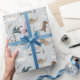 Papier Cadeau Cute Dinosaurs Footprints & Custom Name Light Blue