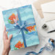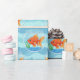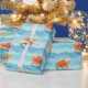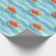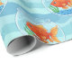 Wrap gifts with playful charm using this cute goldfish bowl wrapping paper, featuring bright orange goldfish swimming in clear bowls against a soft blue wave background.