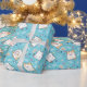 Envelopper le papier avec un motif de chat mignon, posé sur un arrière - plan bleu et décoré avec des arcs-en-ciel et des empreintes de pattes et plus encore.