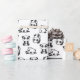 Ce motif mignon et neutre, présente des pandas de style doodle dans différentes poses sur arrière - plan blanc.