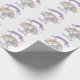Ce papier d'emballage mignon et coloré présente une belle illustration d'un arc-en-ciel couleur unicorne et pastel. De petites étoiles aux couleurs assorties entourent l'arc-en-ciel. Un exemple de bannière Joyeux Anniversaire est imprimé au-dessus de la licorne, et un exemple de nom est imprimé ci-dessous dans une police de caractères violets élégante. Vous pouvez personnaliser l'emballage cadeau pour inclure votre propre nom ou texte personnalisé.