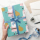 Papier Cadeau Cute rose Noël Père Noël Whimsical Motif Turquoise