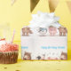 This joyful farm birthday pattern features a cow, pig and horse singing together in a playful celebration scene. The repeating design creates a charming and festive look, perfect for wrapping birthday gifts for children who love farm animals. Soft pastel tones and sweet character expressions make every present feel extra special and thoughtfully prepared.