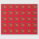 Papier à envelopper pour enfant du mignon Tyrannosaurus Rex et des arbres de Noël. Emballage cadeau T-rex personnalisé avec nom personnalisé de l'enfant. Design amusant avec un dinosaure préhistorique portant un casquette du Père Noël tout en jetant des arbres de Noël. Couleur arrière - plan rouge ou personnalisée. Disponible en rouleaux mat et brillant. Illustration cool pour les garçons qui sont fous des animaux jurassiques.