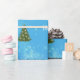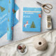 Papier d'emballage de Noël élégant et minimaliste avec une licorne tirant Père Noël traîneau vers un arbre de Noël décoré de billes d'argent. La licorne a une crinière et une queue rouges et dorées et le traîneau porte Père Noël avec de nombreux cadeaux. Le papier d'emballage comprend également le salut "Joyeux Noël" et le nom Joanne. Pensez à personnaliser le nom ! Vous pouvez également changer l'accueil en "Joyeux Jours fériés" si vous le souhaitez. Sur un arrière - plan bleu avec des flocons de neige.