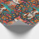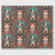 Papier Cadeau Cute Whimsical Folk Art Chat et chien et fleurs